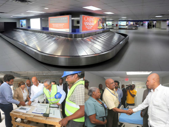 Mercredi, le Président Michel Martelly accompagné de Philippe Cinéas, Secrétaire d'État aux Travaux Publics, de Pierre André Laguerre, Directeur Général de l'Autorité Aéroportuaire Nationale (AAN) et de son Conseiller Grégory Mayard-Paul, a effectué une visite à l'Aéroport International Toussaint Louverture, pour évaluer les travaux de réhabilitation en cours depuis l’été 2012. Le Chef de l'Etat a parcouru le hall de départ et celui d'arrivée, et visité entre autres l'infirmerie entièrement réhabilitée, la salle de conférence, la nouvelle salle d'embarquement en construction, les nouveaux kiosques, les salles de contrôle... Le Président Martelly, s'est également entretenu avec le personnel de l'institution ainsi que des passagers, principaux bénéficiaires de ces importants travaux, qui ont salué la grande transformation opérée au sein de l'aéroport qui, aujourd'hui, affiche un nouveau visage.