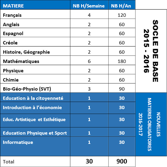 Haïti - Éducation : Secondaire rénové, matières enseignées et charge d'horaire 07/09/2015 12:35:37