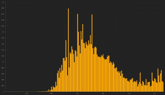 Graphique Monde : cas confirmés quotidien