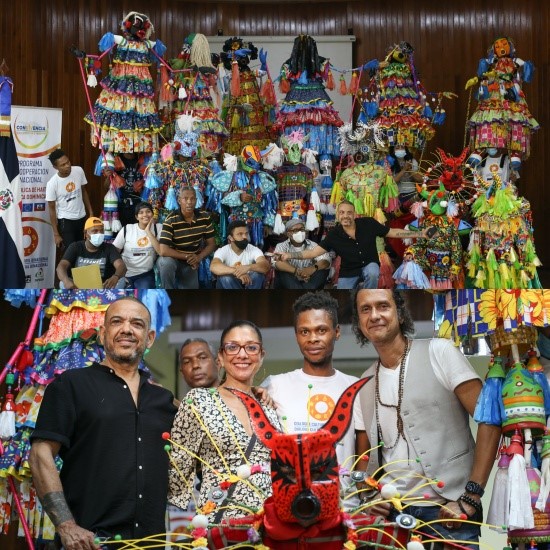 Cinq magnifiques marionnettes portées ont été achevées lors dans le cadre de la première activité en résidence artistique binationale du projet « Dialogue culturel binational / Diálogo cultural binacional », conçu et mis en oeuvre par la Fondation Haïti Jazz et l’association Caracoli pour renforcer la collaboration binationale dans le domaine de la culture, qui a réuni un groupe de dix jeunes artistes dans le Parc Radhamés, de San Cristóbal (République Dominicaine)