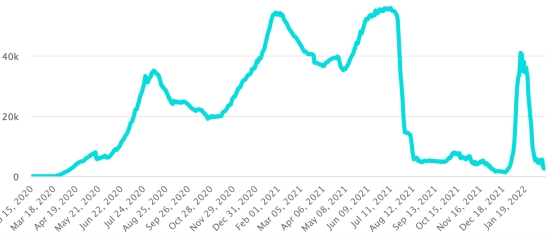 (Jour-1) Vaccination : 548,31 millions de doses de vaccin injectées depuis le 14 décembre 2020 date de la première injection aux États-Unis (+230,000 doses en 24h). Mise à jour 17 février 2022 (dernières données disponibles). RÉPUBLIQUE DOMINICAINE : Cas confirmés depuis le 1er mars 2020 : 570,636 cas (+400 en 24h) la veille (+534). Premier cas (1er mars 2020) Guérisons : 563,757 guérisons (+514), la veille (+481) Taux national de Guérison : 98,79% (+) Décès : 4,351 décès (+2 en 24h), la veille (+2) Taux de mortalité : 0,76% (=) Taux de positivité sur 4 semaines épidémiologiques : 10,24% (-) Cas actifs : (excluant décès et guérisons) 2,528 cas (-116 en 24h) la veille (+51) République Dominicaine : Tendance cas actifs : (moins guérisons et décès)