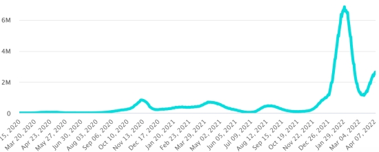 Samedi 9 avril 2022 le nombre de personnes contaminées dans le monde par le coronavirus Covid-19 et ses variants depuis le début de la pandémie (11 mars 2020) s’élève à 497,865,348 cas (+1,149,771 en 24h), la veille (+1,271,149)
