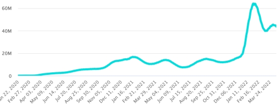 (Jour-1) Vaccination : 11,47 millards de doses de vaccin injectées (+10 millions de doses injectées. Mise à jour 11 avril 2022 (dernières données disponibles). HAÏTI : Avertissement : Le Ministère de la Santé Publique et de la Population (MSPP) n’as pas rendu disponible après le 6 avril 2022 les données quotidiennes sur la situation du Covid-19 en Haïti. En conséquence, les données ci-dessous sur la situation en Haïti sont les dernières disponibles. Selon le Ministère de la Santé Publique, +10 nouveaux cas de Covid-19 et de ses variants auraient été confirmés en Haïti en date du 6 avril 2022 (dernières données partielles disponibles) pour un total de 30,585 cas confirmés sur l’ensemble du territoire national (48,7% de femmes et 51,3% hommes), depuis le premier cas (19 mars 2020 https://www.haitilibre.com/article-30319-haiti-sante-origine-des-2-premiers-cas-de-covid-19-en-haiti.html ). Précédente mise à jour (+8 cas en date du 2 avril 2022). Guérisons : 29,082 (+107) Taux de guérison : 95,08% (+) Décès : 835 décès (+2) (Ouest +2) Taux de mortalité : 2,73% (+) 5ème vague (Omicron dominant) : Total de la 5ème vague (début 27 décembre 2021) 4,591 cas confirmés et 69 décès Dépistage depuis le début de la pandémie : 191,478 tests (+1,242 en 4 jours) depuis le 19 mars 2020, dernières données disponibles. Notez que la très petite quantité de personnes dépistées chaque jour à l’échelon national sur une population estimé à 11,6 millions de citoyens, ne permet pas statistiquement de faire une estimation représentative de la situation en Haïti, ce qui se traduit par un nombre de cas confirmés quotidiennement largement sous évalué. TOP 5 des Communes les plus touchées dans l’Ouest (2022) : Delmas : 744 (+3) ; Pétion-ville 624 (+0) ; Port-au-Prince 407 (+0) ; Tabarre 288 (+0) ; Croix-des-Bouquets 242 (+1) Cas confirmés par département (2022 / 2021 / 2020) : Ouest : 2022 : 2,563 cas ; (2021 : 9,890) ; (2020 : 6,945 cas) Nord : 2022 : 269 cas ; (2021 : 664) ; (2020 : 677 cas) Centre : 2022 : 230 cas ; (2021 : 1,001) ; (2020 : 508 cas) Artibonite : 2022 : 188 cas ; (2021 : 855) ; (2020 : 593 cas) Nord-Est : 2022 : 148 cas ; (2021 : 404) ; (2020 : 314 cas) Sud-Est : 2022 : 268 cas ; (2021 : 768) ; (2020 : 274 cas) Sud : 2022 : 216 cas ; (2021 : 891) ; (2020 : 262 cas) Nord-Ouest : 2022 : 263 cas ; (2021 : 383) ; (2020 : 229 cas) Grand'Anse : 2022 : 176 cas ; (2021 : 861) ; (2020 : 176 cas) Nippes : 2022 : 39 cas ; (2021 : 249) (2020 : 149 cas) Décès cumulés par département (2022-2021) : Ouest : 296 décès (2020 : 104 décès) Nord : 54 décès (2020 : 34 décès) Centre : 79 décès (2020 : 13 décès) Artibonite : 42 décès (2020 : 39 décès) Nord-Est : 7 décès (2020 : 6 décès) Sud : 51 décès (2020 : 6 décès) Sud-Est : 15 décès (2020 : 9 décès) Nord-Ouest : 15 décès (2020 : 12 décès) Grand'Anse : 7 décès (2020 : 13 décès) Nippes : 27 décès (2020 : 5 décès) Répartition des décès par âge (depuis le début de l’épidémie) : 0-9 ans : 15 décès 10-19 ans : 10 décès 20-29 ans : 31 décès 30-39 ans : 56 décès 40-49 ans : 80 décès 50-59 ans : 135 décès (+1) 60-69 ans : 187 décès 70-79 ans : 184 décès (+1) 80 ans et plus : 137 décès Vaccination : 163,369 haïtiens (1,4% de la population) +2,205 en 6 jours ont reçu une 1ère dose de vaccin depuis le 16 juillet 2021 date de la première injection à travers 149 centres de vaccinations ouverts et 111,914 haïtiens sont entièrement vaccinés (2 doses, 0,96% de la population) +1,585 en 6 jours. Mise à jour 22 mars 2022 dernières informations disponibles (source MSPP). Liste des 149 Centres de vaccination ouverts en Haïti (et horaires) par département : (mise à jour 20 octobre 2021, dernières informations disponibles) DIASPORA : Situation épidémiologique : USA : *Cas depuis le premier cas (29 février 2020) : 82,133,342 cas (+30,275 en 24h), la veille (+40,078) *Guérisons : 80,015,081 guérisons (+55,625 en 24h), la veille (+50,936) Taux national de Guérison : 97,42% (+) *Décès : 1,013,044 décès (+583 en 24h), la veille (+310) Taux national de mortalité : 1,23% (=) *Cas actifs (moins décès et guérisons) : 1,105,217 (-25,933 en 24h), la veille (-11,168) USA : Tendance cas actifs : (moins guérisons et décès)