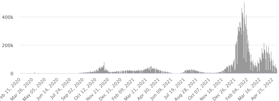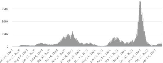 Mardi 10 mai 2022 le nombre de personnes contaminées dans le monde par le coronavirus Covid-19 et ses variants depuis le début de la pandémie (11 mars 2020) s’élève à 517,857,582 cas (+492,918 en 24h), la veille (+288,165)