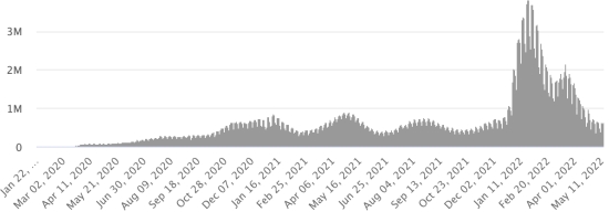 Samedi 14 mai 2022 le nombre de personnes contaminées dans le monde par le coronavirus Covid-19 et ses variants depuis le début de la pandémie (11 mars 2020) s’élève à 520,482,362 cas (+606,908 en 24h), la veille (+640,666)