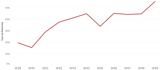 Taux de positivité hebdomadaire :