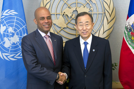 Le Secrétaire Général Ban Ki-moon, qui avait annoncé vendredi dernier que le temps d’un retrait progressif de la Mission des Nations Unies pour la stabilisation en Haïti (Minustah) était venu, a confirmé ce lundi 19 septembre 2011, au Président Michel Martelly, son intention de réduire au cours de l'année à venir l'effectif de la Mission en Haïti, au niveau d'avant le séisme. Rappelons que les forces de la Minustah était passé de 9,000 avant le 12 janvier 2010 à 12,500 hommes aujourd’hui. Le Secrétaire Général Ban Ki-moon a également informé le Président que le projet de retrait progressif de la Minustah, devrait être mis en œuvre en étroite collaboration avec le gouvernement haïtien. Lors de cette rencontre ils ont également discuté de la coopération entre les Nations Unies et le Gouvernement d'Haïti, notamment la question de la Gouvernance et de l'État de Droit.
