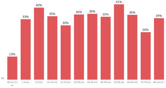 Taux de positivité par segment d’âge :