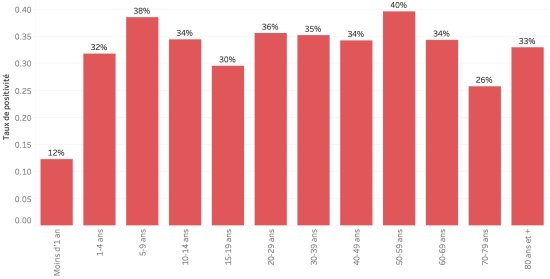 14 mai 2023 : (dernières données disponibles, précédent bulletin du Ministère 13 mai https://www.haitilibre.com/article-39604-haiti-cholera-bulletin-quotidien-187.html Données calculées depuis le premier cas confirmé (3 octobre 2022) Total des cas suspects : 44,354 cas +118 en 24h, la veille +17 en 24h Total des cas confirmés : 2,678* cas +0, la veille +0 en 24h Total des cas hospitalisés (suspects et confirmés) : 38,772 cas +119 cas en 24h, la veille +61 en 24h Total des décès : 686** décès ((460 institutionnels (+0) et 226 communautaires (+1)) +1, précédent +0 *Aucune information sur le nombre d’échantillons reçus et le nombre de cas confirmé, par le Laboratoires du MSPP. Information non actualisée depuis 25 jours **Institutionnel non actualisé depuis 5 jours. Communautaire très partiel Bilan partiel du choléra en Haïti selon les données de la Direction d’Épidémiologie, des Laboratoires et de la Recherche du Ministère de la Santé publique et de la Population (MSPP). Répartition des cas suspects, total depuis le 3 octobre : Actualisation partielle du MSPP Moins d’1 an : 1,020 cas (+3) 1-4 ans : 8,863 cas (+23) 5-9 ans : 6,388 cas (+28) 10-14 ans : 3,171 cas (+6) 15-19 ans : 2,331 cas (+6) 20-29 ans : 5,705 cas (+5) 30-39 ans : 4,875 cas (+17) 40-49 ans : 3,613 cas (+13) 50-59 ans : 2,737 cas (+8) 60-69 ans : 1,938 cas (+5) 70-79 ans : 1,121 cas (+2) 80 ans et + : 460 cas (+2) Hommes : 54,41% d’hommes (+) ; Femmes 45,59 (-) Taux de positivité par segment d’âge :