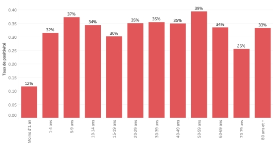 3 Juin 2023 : (dernières données disponibles, précédent bulletin du Ministère 2 juin https://www.haitilibre.com/article-39775-haiti-cholera-bulletin-quotidien-207.html ) Données calculées depuis le premier cas confirmé (3 octobre 2022) Total des cas suspects : 47,213 cas +203 en 24h, précédent +8 en 24h Total des cas confirmés : 3,003* cas +3 en 5 jours, précédent +0 en 24h Total des cas hospitalisés (suspects et confirmés) : 41,391 cas +241 en 24h, la veille +7 en 24h Total des décès : 717* décès ((480 institutionnels (+0) et 237 communautaires (+0)) +0, précédent +0 Bilan partiel du choléra en Haïti selon les données de la Direction d’Épidémiologie, des Laboratoires et de la Recherche du Ministère de la Santé publique et de la Population (MSPP). *Information non actualisée durant 4 jours, données très partielle **Chiffre très partiel non actualisé depuis 3 jours Répartition des cas suspects, total depuis le 3 octobre : Moins d’1 an : 1,114 cas (+8) 1-4 ans : 9,449 cas (+41) 5-9 ans : 6,797 cas (+23) 10-14 ans : 3,409 cas (+19) 15-19 ans : 2,501 cas (+14) 20-29 ans : 6,068 cas (+32) 30-39 ans : 5155 cas (+16) 40-49 ans : 3,852 cas (+14) 50-59 ans : 2,901 cas (+21) 60-69 ans : 2,059 cas (+10) 70-79 ans : 1,195 cas (+4) 80 ans et + : 482 cas (+1) Hommes : 54,28% d’hommes (=) ; Femmes 45,72 (=) (information non actualisée) Taux de positivité par segment d’âge :