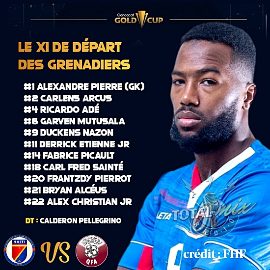 Classement Groupe B : #1 Mexique 3 pts (4 buts contre le Honduras) #2 Haïti 3 points (2 buts contre le Qatar) #3 Qatar 0 #4 Honduras Groupe B Calendrier Phase 1 éliminatoire : 25 juin : 6h00 p.m. (heure locale) 5:00 p.m.(Haïti) au NRG STADIUM de la ville de Houston au Texas. Haïti vs Qatar 29 juin : 7:00 p.m. (heure locale) 10:00 p.m. (Haïti) (au State Farm Stadium de Glandale en Arizona Haïti vs Mexique 2 juillet : 9:00 p.m. (heure locale et heure d’Haïti) au Bank of America Stadium de Charlotte Caroline du Nord Haïti vs Honduras Si nos Grenadiers finissent premier du Groupe B, ils joueront le 8 juillet face au 2e du Groupe C (Salvador, Costa Rica, Panama et un barragiste : Martinique/Saint Lucie/Suriname/Puerto Rico) S’ils finissent 2e, toujours le 8 juillet ils affonteront le 1er du groupe C (Salvador, Costa Rica, Panama et un barragiste: Martinique/Saint Lucie/Suriname/Puerto Rico) Les demi-finales se dérouleront le 12 juillet et la finale le 16 juillet 2023. Lire aussi : https://www.haitilibre.com/article-39781-haiti-gold-cup-2023-2-derniers-matchs-tests.html https://www.haitilibre.com/article-39769-haiti-actualite-zapping.html https://www.icihaiti.com/article-39733-icihaiti-gold-cup-2023-stage-de-preparation-regroupement.html BF/ iciHaïti
