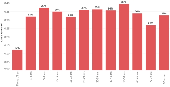 Taux de positivité par segment d’âge :