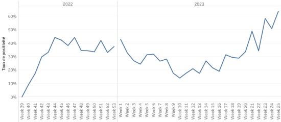 Nombre de tests réalisés : 9,217• +0 en 24h, précédent +20 en 24h Taux de positivité : 35,57%, précédent 35,57% *Non actualisé depuis 1 jour Évolution du taux de positivité :