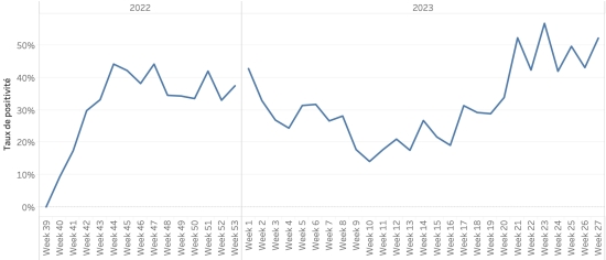 Évolution hebdomadaire du taux de positivité (semaine 27) :