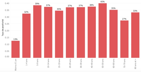 Taux de positivité par segment d’âge :