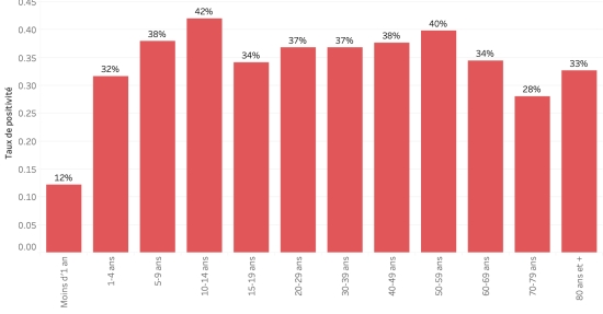 Taux de positivité (moyen depuis le débit de l’épidémie) : 35,74%, précédent 35,74%