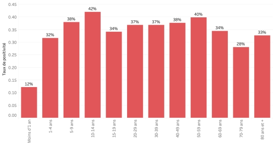 20 juillet 2023 : (dernières données disponibles, précédent bulletin du Ministère 19 juillet https://www.haitilibre.com/article-40147-haiti-cholera-bulletin-quotidien-250.html ) Données calculées depuis le premier cas confirmé (3 octobre 2022) selon les données de la Direction d’Épidémiologie, des Laboratoires et de la Recherche du Ministère de la Santé publique et de la Population (MSPP). Total des cas suspects : 58,859 cas +284 en 24h, précédent +481 en 24h Total des cas confirmés : 3,583* cas +0 en 24h, précédent +0 en 24h Total des cas hospitalisés (suspects et confirmés) : 52,067 cas +58 hospitalisations en 24h, la veille +475 en 24h Total des décès : 809** décès ((562 institutionnels (+0) et 245 communautaires (+0)) +0, précédent +0 *Non actualisé depuis 2 jours. Sur le taux moyen de cas confirmés testés et le nombre de cas suspects de choléra depuis le début de l’épidémie, le nombre de cas confirmés devrait se situer au-dessus de 20,000. **Non actualisé depuis 2 jours. Données communautaires très partielles, actualisation aléatoire… Répartition des cas suspects, total depuis le 3 octobre : (Actualisation partielle du MSPP) Moins d’1 an : 1,458 cas (+3) 1-4 ans : 11,717 cas (+129) 5-9 ans : 8,358 cas (+76) 10-14 ans : 4,332 cas (+6) 15-19 ans : 3,221 cas (+4) 20-29 ans : 7,488 cas (+7) 30-39 ans : 6,377 cas (+13) 40-49 ans : 4,755 cas (+7) 50-59 ans : 3,561cas (+36) 60-69 ans : 2,599 cas (+1) 70-79 ans : 1,517 cas (+0) 80 ans et + : 625 cas (+2) Hommes : 53,64% d’hommes (+) ; Femmes 46,36% Taux de positivité par segment d’âge :