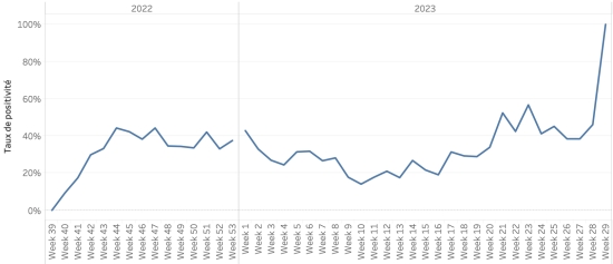 Évolution hebdomadaire du taux de positivité (semaine 28) :