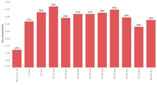 Taux de positivité par segment d’âge :
