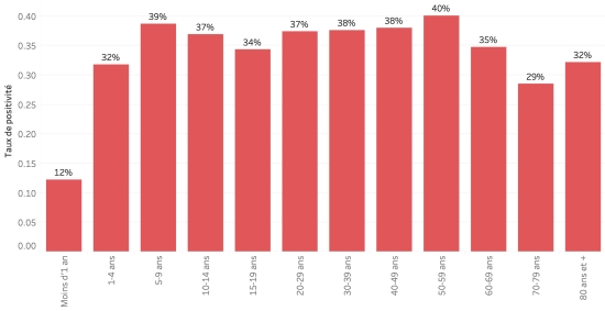 Taux de positivité par segment d’âge :