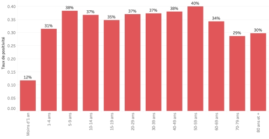 Taux de positivité par segment d’âge :
