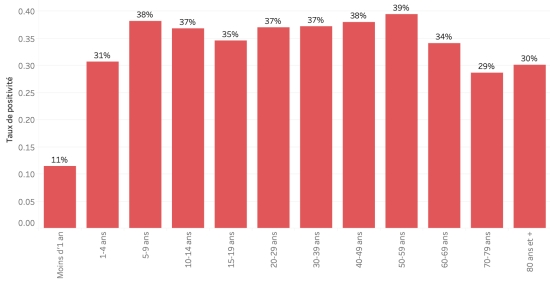 Taux de positivité par segment d’âge :