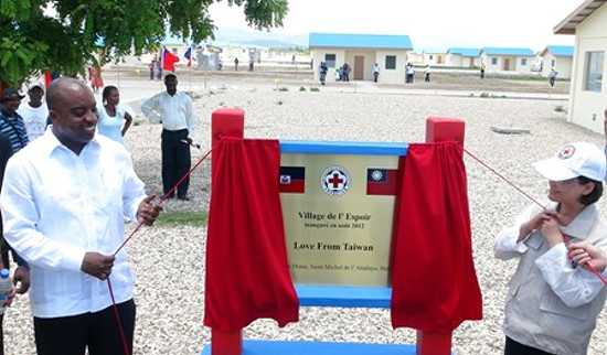 Photo : Pierre Richard Casimir, le ministre haïtien des Affaires étrangères, Wang Jin-feng, la présidente de la société de la Croix-Rouge de la République de Chine Le village est également dotée d'une école élémentaire et de 300 ha de terres arables qui seront utilisées pour enseigner aux habitants les techniques agricoles dans le cadre d’un projet du Fonds de Coopération Internationale et de Développement (ICDF), l’agence taïwanaise en charge de l’aide au développement, placée sous l’autorité du Ministère des Affaires Étrangères à Taipei. Le village est également équipé d'un système d'éclairage à énergie solaire et de quatre installations de stockage de l'eau. « En plus, les enfants du village seront en mesure de fréquenter l'école à partir de cette Octobre », a déclaré Thomas Jacques, ajoutant que son ministère collaborera également avec le ministère de la Santé du pays à mettre en place des cliniques dans le village. HL/ HaïtiLibre