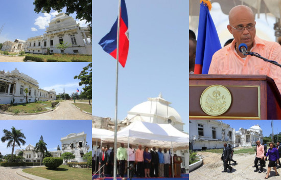 Quelques mois après avoir relocalisé les sinistrés qui occupaient les places publiques dans la région métropolitaine, le Président Martelly, tout en continuant à travailler sur le relogement des personnes occupant d’autres sites d’hébergement, donne désormais la priorité à la reconstruction des bâtiments publics touchés par le séisme de 2010. Lors d'une cérémonie symbolique qui s'est tenue devant les ruines du Palais, le Président Michel Martelly accompagne de la Première Dame, Sophia Martelly, du Ministre de l'Intérieur et des Collectivités territoriales, M. Ronsard St-Cyr, du Ministre des Affaires Etrangères et des Cultes, M. Pierre Richard Casimir, du Directeur de l'Ecole de la Magistrature, M. Kesner Thermessy, du Président du Sénat, M. Dieuseul Simon Desras, du Vice-président de la Chambre des Députés, M. Poly Faustin ainsi que M. Guy Laroche responsable des opérations à J/P HRH et M. Henry Robert Jolibois, Directeur de l’Institut de Sauvegarde du Patrimoine National (ISPAN), a déclaré « En donnant le coup d’envoi à la reconstruction du Palais National, je signifie que j’entends extirper de notre mental le syndrome du 12 janvier avec tout ce que ceci provoque de peurs, d’angoisses et de craintes de l’avenir. J’invite ainsi à tourner nos regards vers la réhabilitation de notre pays, pour que nous prenions en charge notre futur. » Le coût des travaux de démontage et de démolitions seront assumés par J/P Haitian Relief Organization (J/P HRO), l'organisation humanitaire mise sur pied par l'acteur américain Sean Penn, Ambassadeur itinérant pour Haïti, dureront trois mois, a précisé le Président Martelly « la nouvelle construction reproduira à l'identique ces lignes, formes et volumes qui entretenaient et justifiaient notre orgueil » dans le respect des normes parasismiques, sans toutefois mentionner la durée et le coût de ces travaux de reconstruction. M. Guy Laroche, Responsable des opérations à J/P HRO, a indiqué que son équipe supporte ce projet de l’État et promis une large contribution à sa réussite. Pour sa part, l’architecte Henry-Robert Jolibois, Directeur de l’ISPAN a déclaré « Le Palais qui est derrière moi est un symbole extraordinaire de notre devise nationale l'Union fait la force » expliquant que dans un premier temps il s'agit de sauvegarder des morceaux de ce symbole, qu'est le Palais National « la première phase des travaux consiste en un démontage sous contrôle. On va utiliser des systèmes pour essayer de sauvegarder des parties du Palais dans leur intégralité, car il s'agit d'un symbole » précisant qu’une partie du Palais National va être restituée à l’identique et une autre va être modifiée pour les besoins contemporains.
