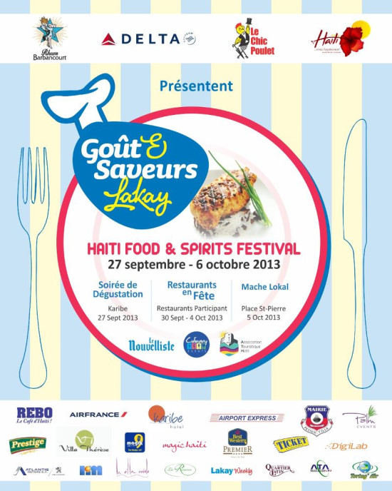 La 3ème Édition du Festival « Goût et Saveurs Lakay - Haïti Food & Spirits Festival », organisé par « Culinary Events » en partenariat avec l’Association Touristique d’Haïti (ATH) et le Nouvelliste, se tiendra dans plusieurs établissements du pays du 27 septembre au 6 octobre 2013 autour du thème « Regardons notre Gastronomie avec une autre Vision. » Pour cette nouvelle Édition plusieurs importants médias des États-Unis et de la Caraïbe ont été invités afin d’apprécier notre cuisine haïtienne et promouvoir notre Culture à partir de la Gastronomie. Au programme : Vendredi 27 septembre : Soirée de dégustation (Karibe Convention Center) ; Dimanche 29 septembre : Brunch avec 5 Chef Femmes (Hôtel Royal Oasis) ; Mardi 1er octobre : Diner sous les Etoiles avec 5 Chefs (dans les jardins du Karibe) ; Jeudi 3 octobre : Soirée Vins et Spiritueux (Palm Residence) ; Vendredi 4 octobre : Soirée de Compétition Cocktail Barbancourt (Hôtel Ritz) ; Samedi 5 octobre : Exposition Mache Lokal (Place Saint-Pierre, Pétion-Ville). Sans compter de nombreuses activités telles que : la semaine des restaurants, des séminaires et séances de formation continue, des cours de cuisine pour enfants avec la collaboration de grands Chefs internationaux comme Paul Yellin «The Rhum Chef », Amadeus gagnant de « Extreme Chef du Show the Food Network », Gilles Tollen du Canada et le Chef Gomez de la République Dominicaine.