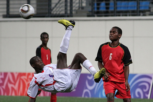 William Barthelemy réalisant un "bicycle kick", un geste considéré comme le plus spectaculaire du football.