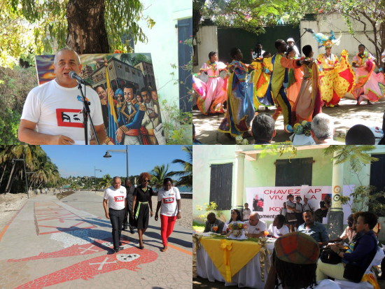 Vendredi, dans le cadre de la cérémonie de prestation de serment du Comité jacmelien du Mouvement Bolivarien, qui s'est déroulée à l'ancienne École des Sœurs de Saint Joseph de Cluny, l'Ambassadeur du Venezuela en Haïti, Pedro Antonio Canino Gonzalez, accompagné des autorités de la ville de Jacmel et de Mme Dithny Joan Raton, la Directrice Départementale du Tourisme du Sud-Est, a visité les travaux financés par le programme PetroCaribe au centre historique de Jacmel : le Centre de convention, la place Pétion-Bolivar et le Boulevard Pétion-Bolivar, avant de se rendre au Port touristique de Jacmel, sur le chantier de construction de l'amphithéâtre... L’écrivain Michelet Divers, présent a cet événement, a relaté l’amitié entre Pétion et Bolivar, qui a permis que le panaméricanisme devienne une réalité et que la liberté pour tous, soit établie comme mot d'ordre sur le continent latino-américain. Cette liberté devenue pierre d’achoppement du feu Président Hugo Chavez, poursuivie par le Président actuel de la République Bolivarienne du Venezuela, Nicolas Maduro est ce qui permet aujourd'hui cette amitié fructueuse entre Haïti et le Venezuela.