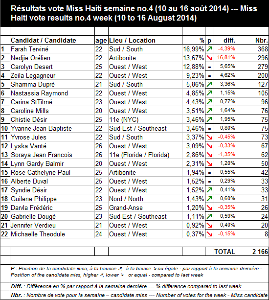 Haiti - Social : Results of votes Miss Haiti 2014 (Week 4) 17/08/2014 12:18:14