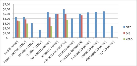 Recent situation of decline in international cost and price changes at the pump : At the end of the 2013-2014 fiscal year, the Haitian government was committed to eliminate the subsidy on petroleum products by the end of the 2014-2015 fiscal year; A timetable has been established in this sense : It was expected to proceed by four (4) price increases in 2015 to be able to fully eliminate the subsidy https://www.haitilibre.com/en/news-12238-haiti-notice-painful-increases-in-fuel-prices.html This allowed to build upon forecasts of petroleum revenues of around 7.8 billion gourdes for the fiscal year; Thus, a first increase in prices took place in October 2014, a gallon of gasoline has increased from 200 to 215 gourdes, diesel gallon increased from 162 to 177 gourdes per gallon and diesel increased from 161 to 171 gourdes; However, the context of the fall in prices of petroleum products on the international market has been at the favor of the automatic elimination of subsidies on petroleum products and allowed the redesign of the phasing out of the subsidy program envisaged for the year. This favorable situation allowed to record petroleum revenues of around 2.2 billion gourdes in the first four months of fiscal year 2014 to 2015 and to anticipate that the budget estimates of petroleum revenues would be reached under the price assumption slightly revised upward and revised upward and consider lower prices at the pump. But, faced with the decline in Petrocaribe Fund's resources caused by the oil price on the international market, a sharp fall in prices at the pump may be catastrophic for the balance of public finances and cause a deterioration of conditions macroeconomic detrimental to the stability and the continuation of certain policies aimed at improving household living conditions; In this context, the Government conduct negotiations with drivers' unions, who conducted a decision to lower prices of petroleum products https://www.haitilibre.com/en/news-13095-haiti-flash-fuel-price-decrease-the-government-made-an-extra-effort.html Gazoline 20 Gourdes Diesel 20 Gourdes Kerosene 15 Gourdes These adjustments were accompanied by the commitment of the state to reactivate as soon as the automatic adjustment mechanism. Budgetary impact of new adjustment and comparison with the Caribbean : The new adjustment should allow oil revenue of around 8 billion gourdes for the year, if the adjustment mechanism is activated and if an increase does not exceed 5% of the CIF (Cost, Insurance and Freight) in gourdes, which is within the limits of budget estimates for 2014-15. But the combined drop in Petrocaribe resources leads to a revision of budget predictions credit of the exercise on the Petrocaribe funding to nearly half. Compared to other Caribbean countries, the price in Haiti is very close to the Dominican Republic, with a difference of nearly 10 cents less than at Cuba. It is clearly lower than in most European countries such as France, Belgium and Norway where gasoline is more expensive.