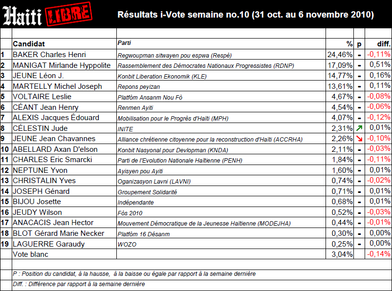 Haiti - i-Vote : Results tenth week - HaitiLibre.com : Haiti news 7/7