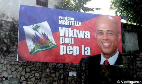 A festival atmosphere prevails in the Haitian capital. The effigy of President Martelly and the colors of his campaign, pink and white, gradually invade the city. Michel Martelly portraits are painted on the walls of some neighborhoods in the metropolitan area of Port-au-Prince, accompanied by messages in favor of the new President. Youth groups are working day and night to clean and beautify their neighborhoods before the inauguration day. Imposing billboard with the image of the new President proclaims the victory of the people.