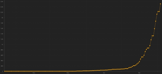 GLOBAL SITUATION : Thursday, June 4, 2020, the number of people infected worldwide with the Covid-19 coronavirus since the start of the pandemic (Official source), amounted to 6,535,019 confirmed cases +129,487 cases in 24 hours ( the day before: +111,310). Number of contaminated countries 188 (unchanged). Bulletin from the day before : https://www.haitilibre.com/en/news-30936-haiti-covid-19-daily-report-june-3-2020.html Since the start of the pandemic 2,824,722 have been cured of Covid-19 worldwide +76,813 people (the day before: +36,668). Since the start of the pandemic 386,464 people have died from Covid-19 worldwide +5.691 in 24 hours (the day before: +4.696). The number of active cases worldwide (excluding death and recovery) is currently 3,276,850 cases +46,983 in 24 hours (the day before: +69,946). TOP 5 of the countries with the most active cases : 1st - USA: 1,265,087 cases +3,315 in 24h (the day before: +13,873) 2nd - Brazil: 312,851 cases +12,305 in 24h (the day before: +15,116) 3rd - United Kingdom: 240,247 cases +1,516 in 24h (the day before: +1,343) 4th - Russia: 230,965 cases +17 in 24h (the day before: +5,636) 5th - India: 107,632 cases +5,406 in 24h (the day before +4,075) TOP 5 of the countries with the most deaths : 1st - USA: 107.175 deaths +994 in 24 hours (the day before: +1.034) 2nd - United Kingdom 39,811 deaths +359 in 24h (the day before: +325) 3rd - Italy: 33.601 death +71 in 24h (the day before: +55) 4th - Brazil: 32,548 deaths +1,349 in 24 hours (the day before: +1,262) 5th - France: 29,001 deaths +81 in 24h (the day before: +107) DIASPORA : United States : Cases since the start of the epidemic : 1,851,520 cases +19,699 in 24 hours (the day before: +20,544) Healings : 479,258 people +15,390 (the day before +5,637) Death : 107.175 deaths +994 in 24 hours (the day before: +1.034) Active cases (minus death and recovery) : 1,265,087 cases +3,315 in 24 hours (the day before: +13,873) Canada : Cases since the start of the epidemic : 94,641 cases +680 in 24 hours (the hurdy-gurdy +673) Healings : 51,506 people, +781 in 24h (the day before +634) Death : 7,579 deaths +102 in 24 hours (the day before: +73) Active cases : (excluding death and recovery) 35,556 active cases -203 in 24 hours (the day before: -34) France : Cases confirmed since the first case : 188,802 cases +342 in 24 hours (the day before: -898) Healings : 69,446 people +643 in 24h (the day before: +372) Death : 29,001 deaths since the start of the epidemic +81 in 24 hours (the day before: +107) Active cases : (excluding death and recovery) 90,205 cases -372 in 24 hours (the day before: -1,377) Latin America and the Caribbean active cases : Brazil : 312,851 cases +12,305 in 24h (the day before: +15,116) Peru : 101.701 cases +5.553 in 24h (the day before: -750) Chile : 90,748 cases +4,575 in 24h (the day before: +3,192) Colombia : 20,048 cases +158 (the day before: -147) Ecuador : 17,461 cases +504 in 24 hours (the day before: +180) Mexico : 16,829 cases -111 in 24 hours (the day before: +637) Argentina : 12,789 cases +748 cases in 24 hours (the day before: +703) Dominican Republic : 6,300 cases +138 in 24h (the day before: -9). Panama : 4,733 cases +504 in 24 hours (the day before: +250) Haiti : 2,566 cases (+ 5.38%) +131 cases in 24 hours (the day before: +278) Jamaica : 220 cases -5 in 24 hours (the day before: -32) French Guiana : 443 cases +9 (the day before: +9) Cuba : 194 cases +12 in 24 hours (the day before: +8) Martinique : 101cas -3 (the day before: +3) Guadeloupe : 75 cases unchanged within 24 hours (the day before: +2) Bahamas : 36 cases -6 Saint Martin : 38 cases (unchanged) HAITI : Epidemiological situation : The Ministry of Public Health informs that 133 new cases of Covid-19 have been confirmed in Haiti (the day before: 281), for a total of 2,640 cases throughout the national territory (40.6% women and 59.4% men ) since the first case (March 19, 2020 https://www.haitilibre.com/en/news-30319-haiti-health-origin-of-the-first-2-cases-of-covid-19-in-haiti.html ). 2 new deaths have been recorded in Artibonite, bringing the total to 50 deaths across the country. Active cases (less death and recovery) : 2,566 cases (+ 5.38%) +131 cases in 24 hours (the day before: +278) Number of suspected cases investigated since the first case : 5,562 cases (+ 5.54%) +292 (the day before: +26) People hospitalized and quarantine at home : (information not available) Graph: daily confirmed cases