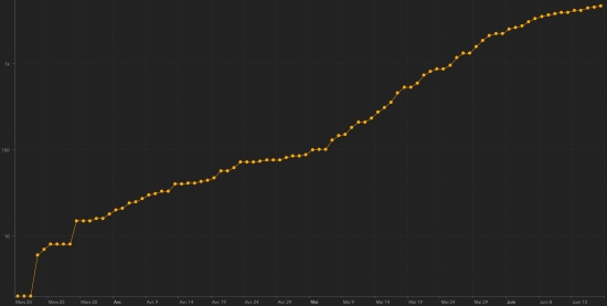 * Note : These 2 graphs are less than the reality, the Haitian authorities having "omitted" 6 times to update the data. Cases confirmed by department (4,688) : West: 3,709 cases (+122), the day before (+91) Artibonite: 224 cases (unchanged), Center: 158 cases (+6), the day before (+19) North: 130 cases (unchanged), the day before (+9) Southeast: 100 cases (+13) North West: 84 cases (unchanged), the day before (+14) Grand’Anse: 83 cases (unchanged) South: 83 cases (unchanged) North East: 60 cases (unchanged), the day before (+2) Nippes: 57 cases (unchanged) Location of cases (4,688) : West : 3,709 cases (+122) Delmas : 930 cases (+25), the day before (+13) Port-au-Prince : 851 case (+14), the day before (+8) Pétion-ville : 593 cases (+21), the day before (+7) Tabarre : 476 cases (+16), the day before (+9) Croix-des-Bouquets : 314 cases (+31), the day before (+15) Carrefour : 284 cases (+4), the day before (+2) Cité Soleil : 63 cases (+1), the day before (+1) Petit-Goâve : 57 cases (unchanged) Kenskoff : 37 cases (+1) Léogâne : 32 cases (+6) Gressier 23 cases (+1), the day before (+1) Cabaret : 18 cases (+1), the day before (+1) Archaie : 12 cases (+1), the day before (+14) Ganthier : 6 cases (unchanged) Anse à Galet : 6 cases (unchanged), the day before (+1) Cornillon : 3 cases (unchanged) Grand Goâve : 3 cases (unchanged) Thomazeau : 1 case (unchanged) Artibonite : 224 cases (unchanged) Saint Marc : 100 cases (unchanged) Gonaïves : 60 cases (unchanged) Verettes : 30 cases (unchanged) L’Estère : 9 cases (unchanged) Marchand Dessalines : 7 cases (unchanged) Petite Rivière de l’Artibonite : 5 cases (unchanged) Saint Michel : 4 cases (unchanged) Ennery : 3 cases (unchanged) Anse Rouge : 2 cases (unchanged) Gros Morne : 1cases (unchanged) Desdunes : 1 case (unchanged) Grande Saline : 1 case (unchanged) Marmelade : 1 case (unchanged) Center : 158 cases +6 Mirebalais : 72 cases (+4) Hinche : 59 cases (unchanged), the day before (+19) Boucan Carré : 11 case (unchanged) Lascaobas : 8 cases (+2) Maissade : 2 cases (unchanged) Belladère : 2 cases (unchanged) Cerca la Source : 1 (unchanged) Saut-d’Eau 1 case (unchanged) Savanette : 1 case (unchanged) Thomonde : 1 case (unchanged) North : 130 (unchanged) Cap Haïtien : 84 cases (unchanged), the day before (+7) Limbé : 11 case (unchanged) Grande Rivière du Nord : 9 cases (unchanged) Plaine du Nord : 5 cases (unchanged), the day before (+1) Limonade : 4 cases (unchanged) Plaisance du Nord : 4 cases (unchanged) Milot : 4 cases (unchanged) Acul du Nord : 3 cases (unchanged) Quartier Morin : 2 (unchanged), the day before (+1) Borgne : 1 case unchanged Pilate : 1 case unchanged Pignon : 1 case (unchanged) Port Margot : 1 case (unchanged) South-Esat : 100 cases (+13) Jacmel : 80 cases (+13) Vallée de Jacmel : 6 cases (unchanged) Côte-de-Fer : 5 cases (unchanged) Thiotte : 3 cases (unchanged) Belle Anse : 2 cases (unchanged) Marigot : 2 cases (unchanged) Cayes Jacmel : 1 (unchanged) Bainet : 1 case (unchanged) North-West : 84 cases (unchanged) Port-de-Paix : 63 cases (unchanged, the day before (+12) Saint-louis du Nord : 5 cases (unchanged, the day before (+1) Môle Saint-Nicolas : 5 cases (unchanged) Jean Rabel : 3 cases (unchanged) Chansolme : 3 cases (unchanged), the day before (+1) Bombardopolis : 2 cases (unchanged) La Tortue : 1 case (unchanged) Anse-à-Foleur : 1 case (unchanged) South : 83 cases (unchanged) Cayes : 61 case (unchanged) Aquin : 7 cases (unchanged) Torbeck : 3 cases (unchanged) Chantal : 2 cases (unchanged) Chardonnières : 2 cases (unchanged) Camp-Perrin : 1 case (unchanged) Cavaillon 1 case (unchanged) Coteaux : 1 case (unchanged) Île-à Vache : 1 case (unchanged) Les Anglais : 1 case (unchanged) Port à Piment : 1 case (unchanged) Port-Salut : 1 case (unchanged) Saint-Louis du Sud : 1 case (unchanged) Grand'Anse : 83 cases (unchanged) Jérémie : 72 cases (unchanged) Chambellan : 7 cases (unchanged) Bonbon : 1 case (unchanged) Moron : 1 case (unchanged) Roseaux : 1 case (unchanged) Pestel : 1 case (unchanged) North-East : 60 cases (unchanged) Ouanaminthe : 22 cases (unchanged), the day before (+1) Fort Liberté : 15 cases (unchanged) Trou du Nord : 9 cases (unchanged), the day before (+1) Caracol 8 cases (unchanged), the day before (+1) Carice 1 case (unchanged) Terrier Rouge : 1 case (unchanged) Nippes : 57 cases (unchanged) Miragoâne : 20 cases (unchanged) Fond des Nègres : 9 cases (unchanged) Baradères : 6 cases (unchanged) Anse à Veau 5 cases (unchanged) Petite Riviere de Nippes : 5 cases (unchanged) Plaisance du Sud : 4 cases (unchanged) L’Asile : 4 cases (unchanged) Arnaud : 1 case (unchanged) Grand Boucan : 1 (unchanged) Paillant : 1 case (unchanged) Petit Trou de Nippes 1 case (unchanged) Distribution of cases by age group (4,688) : 0-9 years: 112 (+5) 10-19 years: 132 (+2) 20-29 years: 860 (+17) 30-39 years: 1.468 (+33) 40-49 years: 916 (+25) 50-59 years: 576 (+21) 60-69 years: 393 (+18) 70 and over: 231 (+20) Distribution of deaths by age group (82) : 0-9 years: 2 deaths (unchanged) 10-19 years: 1 death (unchanged) 20-29 years: 4 deaths (unchanged) 30-39 years: 4 deaths (unchanged) 40-49 years: 15 deaths (+1) 50-59 years: 17 deaths (unchanged) 60-69 years: 13 deaths (+1) 70 and over: 26 deaths (unchanged) Healings :: 24 people healed (information not updated by the Ministry since May 31, 2020) National Healing Rate : 0.0052% (-) Death : 82 deaths (+2) Mortality rate : 1.75% (-) UNITED STATES : Epidemiological situation : United States : Cases since the beginning of the epidemic : 2,163,290 cases (+25,559 in 24h), the day before (+23,705) Healings : 592,191 people (+8,688 in 24h), the day before (+7,169) National Healing Rate : 27.37% (+) Death : 117,717 deaths (+754 in 24 hours), the day before (+836) Active cases (less death and recovery): 1,453,382 cases (+16,117 in 24 hours), the day before (+15,700) Tests : 24,937,877 people were tested (+488,570 in 24 hours), the day before (+464,715). Ne