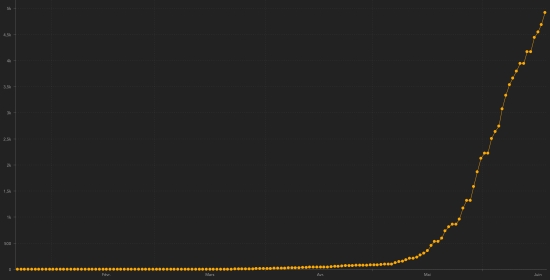 Since the start of the pandemic 4,186,434 people have been cured of Covid-19 worldwide +84,557 in 24 hours (the day before: +119,003) Since the start of the pandemic 454,625 people have died from Covid-19 worldwide +4.997 in 24 hours (the day before: +5.065) The number of active cases worldwide (excluding death and recovery) is currently 3,879,702 cases +47,930 in 24 hours (the day before: +48,567) Average mortality rate in the world : 5.34% (-) Average cure rate in the world : 49.13% (+) TOP 5 of the countries with the most active cases : 1st - USA: 1,473,650 cases (+20,268 in 24h), the day before (+16,117) 2nd - Brazil: 395,814 cases (+7.993) in 24 hours) the day before (-122) 3rd - United Kingdom: 258,249 cases (+1,074 in 24h), the day before (+924) 4th - Russia: 236,610 cases (-2,644 in 24 hours), the day before (-2,027) 5th - India: 163,248 cases (+2,864 in 24h), the day before (+5,157) TOP 5 of the countries with the most deaths : 1st - USA: 118,435 deaths (+718 in 24 hours), the day before (+754) 2nd - Brazil: 47,748 deaths (+1,238 in 24 hours), the day before (+1,269) 3rd - United Kingdom 42.373 deaths (+135 in 24h), the day before (+184) 4th - Italy: 34,514 deaths (+66 in 24h), the day before (+43) 5th - France: 29,606 deaths (+28 in 24 hours), the day before (+51) DIASPORA : United States : Cases since the start of the epidemic : 2,191,200 cases (+27,910 in 24 hours), the day before (+25,559) Healings : 599,115 people (+6,924 in 24h), the day before (+8,688) National Healing Rate : 27.34% (-) Death : 118,435 deaths (+718 in 24 hours), the day before (+754) Active cases (less death and recovery): 1,473,650 cases (+20,268 in 24 hours), the day before (+16,117) Canada : Cases since the start of the epidemic : 101,879 cases (+388 in 24h), the day before (+404) Healings : 63,782 people (+502 in 24h), the day before (+1,381) National Healing Rate : 62.61% (+) Death : 8,361 deaths (+49 in 24 hours), the day before (+41) Active cases : (excluding death and recovery) 29,736 active cases (-163 in 24 hours), the day before (-1,018) France : Cases confirmed since the first case : 195,272 cases (+467 in 24h), the day before (+458) Healings : 74,011 people (+220 in 24h), the day before (+466) National Healing Rate : 37.9% (+) Death : 29,606 deaths (+28 in 24 hours), the day before (+51) Active cases : (excluding death and recovery) 91,655 cases (+160 in 24h), the day before (-59) Latin America and the Caribbean active cases : Brazil : Brazil: 395,814 cases (+7.993) in 24 hours) the day before (-122) Peru : 105,737 cases (+708 in 24h), the day before (+134) Colombia : 33,886 cases (+1,090 in 24h), the day before (+1,379) Chile : 34,821 cases (-261 in 24 hours), the day before (+10,248) Mexico : 23.528 (+1.319 in 24h), the day before (+1.050) Argentina : 24.705 cases (+578 in 24h), the day before (+1.366) Ecuador : 20,887 cases (+285 in 24h), the day before (+313) Dominican Republic : 9,717 cases (+ 461in 24h), the day before (+318) Panama : 9.094 cases (+ 741in 24h), the day before (+622) Haiti : 4.808 (+ 4.93%) +226 in 24h (the day before: +139) * French Guiana : 1,392 cases (not updated) Cuba : 183 cases (-14 in 24 hours) Jamaica : 170 cases (+5 in 24h), the day before (+3) * Martinique : 99 cases (not updated) * Guadeloupe : 68 cases (not updated) Bahamas : 19 cases (-2 in 24 hours) (*) Update information from Santé Public France, not available. HAITI : Epidemiological situation : The Ministry of Public Health informs that 228 new cases of Covid-19 have been confirmed in Haiti (the day before: +141), for a total of 4,916 cases throughout the national territory (40.2% women and 59.8% d 'men) since the first case (March 19, 2020 https://www.haitilibre.com/en/news-30319-haiti-health-origin-of-the-first-2-cases-of-covid-19-in-haiti.html ). Deaths : 2 new deaths were recorded 1 in the West and 1 in the Northwest bringing the national total to 84. Active cases : (less death and recovery): 4.808 (+ 4.93%) +226 in 24 hours (the day before: +139), an increase of 62.59% new cases at the national level. All departments are affected. Number of suspected cases investigated since March 19 : 9,813 cases (+162) in 24 hours the day before (+298). People hospitalized and quarantine at home : information not available Number of tests : information not available Graph *: daily confirmed cases