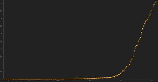 * Note : These 2 graphs are a representation less than the reality, the Haitian authorities having “omitted” 7 times to update the number of cases… < / I> Cases confirmed by department : West: 4,025 cases (+78), the day before (+76) Artibonite: 245 cases (+16) Center: 198 cases (+3), the day before (+19) North: 164 cases (+12) South: 123 cases (+11), the day before (+2) Southeast: 113 cases (+4) North West: 106 cases (+3) Grand’Anse: 91 cases (unchanged) North East: 76 cases (+6) Nippes: 70 cases (+1) Location of cases : West : 4,025 cases (+78) Delmas : 1,008 cases (+12), the day before (+23) Port-au-Prince : 891 case (+8), the day before (+7) Pétion-ville : 640 cases (+7), the day before (+14) Tabarre : 504 cases (+7), the day before (+9) Croix-des-Bouquets : 356 cases (+15), the day before (+11) Carrefour : 312 cases (+10), the day before (+5) Petit-Goâve : 77 cases (+6), the day before (+0) Cité Soleil : 69 cases (+3), the day before (+2) Kenskoff : 42 cases (+0), the day before (+1) Léogâne : 39 cases (+4), the day before (+0) Gressier 26 cases (+2), the day before (+0) Cabaret : 24 cases (+3), the day before (+2) Archaie : 14 cases (+0), the day before (+2) Anse à Galet : 10 cases (+1), the day before (+0) Ganthier : 6 cases (unchanged) Cornillon : 3 cases (unchanged) Grand Goâve : 3 cases (unchanged) Thomazeau : 1 case (unchanged) Artibonite : 245 cases (+16) Saint Marc : 102 cases (+2), the day before (+0) Gonaïves : 67 cases (+3), the day before (+0) Verettes : 39 cases (+8), the day before (+0) L’Estère : 9 cases (unchanged) Marchand Dessalines : 8 cases (+1), the day before (+0) Petite Rivière de l’Artibonite : 5 cases (unchanged) Saint Michel : 4 cases (unchanged) Ennery : 3 cases (unchanged) Desdunes : 2 cases (+1), the day before (+0) Grande Saline : 2 cases (+1),the day before (+0) Marmelade : 1 case (unchanged) Anse Rouge : 2 cases (unchanged) Gros Morne : 1cases (unchanged) Center : 198 cases (+3) Mirebalais : 91 case (+0), the day before (+12) Hinche : 70 cases (+3), the day before (+3) Marmelade : 1 case (unchanged) Boucan Carré : 14 cases (+1), the day before (+1) Lascaobas : 10 cases (+1), the day before (+1) Belladère : 4 cases (unchanged) Savanette : 3 cases (+1), the day before (+1) Maissade : 2 cases (unchanged) Thomonde : 2 cases (+1), the day before (+1) Cerca la Source : 1 case (unchanged) Saut-d’Eau 1 case (unchanged) North : 164 (+12) Cap Haïtien : 112 cases (+10), the day before (+1) Limbé : 11 case (unchanged) Grande Rivière du Nord : 10 cases (+1), the day before (+0) Plaine du Nord : 6 cases (unchanged) Milot : 5 cases (+1) Limonade : 5 cases (unchanged) Plaisance du Nord : 4 cases (unchanged) Acul du Nord : 4 cases (unchanged) Quartier Morin : 2 cases (unchanged) Borgne : 2 cases (unchanged) Pilate : 1 case (unchanged) Pignon : 1 case (unchanged) Port Margot : 1 case (unchanged) South : 123 (+11) Cayes : 90 cases (+7), the day before (+2) Aquin : 12 cases (+2), the day before (+0) Torbeck : 5 cases (unchanged) Les Anglais : 2 cases (+1) Saint-Louis du Sud : 2 cases (+1) Port à Piment : 2 cases (unchanged) Chantal : 2 cases (unchanged) Chardonnières : 2 cases (unchanged) St Jean du Sud : 1 case (unchanged) Camp-Perrin : 1 case (unchanged) Cavaillon 1 case (unchanged) Coteaux : 1 case (unchanged) Île-à Vache : 1 case (unchanged) Port-Salut : 1 case (unchanged) South-East : 113 cases (+4) Jacmel : 91 case (+3), the day before (+0) Vallée de Jacmel : 6 cases (unchanged) Côte-de-Fer : 5 cases (unchanged) Thiotte : 4 cases (+1), the day before (+0) Bainet : 2 cases (unchanged) Belle Anse : 2 cases (unchanged) Marigot : 2 cases (unchanged) Cayes Jacmel : 1 case (unchanged) North-West : 106 cases (+3) Port-de-Paix : 72 cases (+1), the day before (+0) Bombardopolis : 12 cases (unchanged) Saint-louis du Nord : 6 cases (+2), the day before (+0) Môle Saint-Nicolas : 5 cases (unchanged) Jean Rabel : 3 cases (unchanged) Chansolme : 3 cases (unchanged) La Tortue : 1 case (unchanged) Anse-à-Foleur : 1 case (unchanged) Grand'Anse : 91 case (unchanged) Jérémie : 76 cases (unchanged) Chambellan : 7 cases (unchanged) Anse d’Hainault : 3 (unchanged) Pestel : 2 cases (unchanged) Bonbon : 1 case (unchanged) Moron : 1 case (unchanged) Roseaux : 1 case (unchanged) North-East : 76 cases (+6) Ouanaminthe : 23 cases (unchanged) Fort Liberté : 16 cases (unchanged) Caracol 16 cases (unchanged) Trou du Nord : 14 cases (+5), the day before (+0) Mont Organisé : 1 (+1), the day before (+0) Ferrier : 1 case (+1), the day before (+0) Carice 1 case (unchanged) Terrier Rouge : 1 case (unchanged) Nippes : 70 cases (i+1) Miragoâne : 30 cases (+1), the day before (+0) Fond des Nègres : 9 cases (unchanged) Baradères : 7 cases (unchanged) Plaisance du Sud : 5 cases (unchanged) Anse à Veau 5 cases (unchanged) Petite Riviere de Nippes : 5 cases (unchanged) L’Asile : 4 cases (unchanged) Paillant : 2 cases (unchanged) Arnaud : 1 case (unchanged) Grand Boucan : 1 case (unchanged) Petit Trou de Nippes 1 case (unchanged) NOTE : "unchanged" means that there is no new data available, it may be the absence of new cases, unreported cases or delay in the transmission of data in the Ministry which is the case most of the time. Distribution of cases by age group : 0-9 years: 132 (+6) 10-19 years: 153 (+8) 20-29 years: 948 (+22) 30-39 years: 1,595 (+24) 40-49 years: 1.012 (+26) 50-59 years: 641 (+19) 60-69 years: 457 (+15) 70 and over: 273 (+14) Distribution of deaths by age group : 0-9 years: 3 deaths (unchanged), the day before (+1) 10-19 years: 1 death (unchanged) 20-29 years: 4 deaths (unchanged) 30-39 years: 4 deaths (unchanged) 40-49 years: 15 deaths (unchanged) 50-59 years: 19 deaths (unchanged) 60-69 years: 14 deaths (unchanged) 70 and over: 28 deaths (unchanged) Healings :: 24 people healed (information not communicated by the Ministry since May 31, 2020) National Healing Rate : 0.0046% (-) Death : 88 deaths (unchanged) Mortality rate : 1.69% (-) UNITED