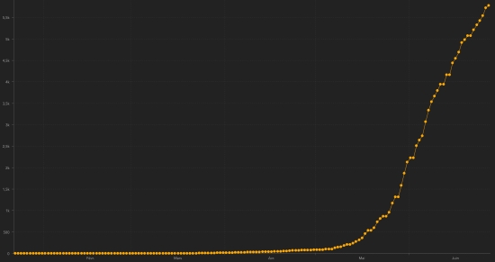 GLOBAL SITUATION : Sunday, June 28, 2020, the number of people infected worldwide with the Covid-19 coronavirus since the start of the pandemic (Official source), amounted to 10,012,244 confirmed (+ 174,039 cases in 24 hours) , the day before: (+194,206). Number of contaminated countries 188 (unchanged) Bulletin from the day before : https://www.haitilibre.com/en/news-31137-haiti-covid-19-daily-report-june-27-2020.html Since the start of the pandemic 5,077,700 people have been cured of Covid-19 worldwide (+104,358 in 24 hours), the day before (+107,780) Since the start of the pandemic 499,486 people have died of Covid-19 worldwide (+4.407 in 24h), the day before (+5.024) The number of active cases worldwide (excluding death and recovery) is currently 4,435,058 cases (+65,274) in 24 hours (the day before: +81,402) Average cure rate in the world : 50.71% (+) Average mortality rate in the world : 4.99% (-) Chart: daily confirmed cases