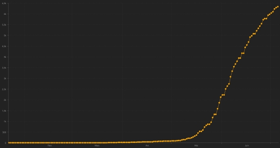GLOBAL SITUATION : Monday, July 6, 2020, the number of people infected worldwide by the coronavirus Covid-19 since the start of the pandemic (Official source), amounted to 11,471,225 confirmed (+177,487 cases in 24 hours) , the day before: (+200,556). Number of contaminated countries 188 (unchanged) Bulletin from the day before : https://www.haitilibre.com/en/news-31205-haiti-covid-19-daily-report-july-5-2020.html Since the start of the pandemic 6,193,538 people have been cured of Covid-19 worldwide (+114,986 in 24 hours), the day before (+188,500) Since the start of the pandemic 534,787 people have died of Covid-19 worldwide (+3,543 in 24 hours), the day before (+5,753) The number of active cases worldwide (excluding death and recovery) is currently 4,742,900 cases (+58,958) in 24 hours (the day before: +6,303) World Chart: daily confirmed cases