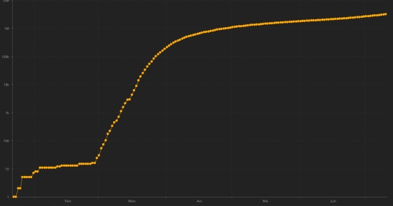 TOP 5 of the countries with the most active cases : 1st - USA: 2,067,440 cases (+51,699 in 24 hours), the day before (+46,369) 2nd - Brazil: 513,068 cases (-2,080 in 24h) the day before (+9,796) 3rd - India: 283.407 cases (+6.725 in 24h), the day before (+6.893) 4th - United Kingdom: 243,565 cases (+465 in 24h), the day before (+569) 5th - Russia: 211,667 cases (-1,962 in 24h), the day before (-1,242) TOP 5 of the countries with the most deaths : 1st - USA: 134,097 deaths (+806 in 24h), the day before (+982) 2nd - Brazil: 70,398 deaths (+1,214 in 24 hours), the day before (+1,220) 3rd - United Kingdom 44,735 deaths (+48 in 24 hours), the day before (+85) 4th - Italy: 34,938 deaths (+12 in 24 hours), the day before (+12) 5th - Mexico: 34,191 deaths (+665 in 24h), the day before (+730) DIASPORA : United States : Cases since the start of the epidemic : 3,184,722 cases (+66,579 in 24h), the day before (+62,999) Healings : 983,185 people (+14,074 in 24h), the day before (+15,691) National Healing Rate : 30.87% (-) Death : 134,097 deaths (+806 in 24 hours), the day before (+982) Active cases (less death and recovery): 2,067,440 cases (+51,699 in 24 hours), the day before (+46,369) Canada : Cases since the start of the epidemic : 108,984 cases (+328 in 24h), the day before (+322) Healings : 72,466 people (+371 in 24h), the day before (+290) National Healing Rate : 66.49% (+) Death : 8,811 deaths (+14 in 24 hours), the day before (+11) National mortality rate : 8.08% (-) Active cases : (excluding death and recovery) 27,707 active cases (-57 in 24 hours), the day before (+21) France : Cases confirmed since the first case : 208.015 (+659), the day before (+621) Healings : 78,377 people (+218 in 24h), the day before (+174) National Healing Rate : 37.68% (-) Death : 30.005 death (+25), the day before (+14) Active cases : (excluding death and recovery) 99.633 (+416), previous (+133) Latin America and the Caribbean active cases : Brazil : 513,068 cases (-2,080 in 24h) the day before (+9,796) Peru : 97.508 cases (+176 in 24h), the day before (+302) Colombia : 72,716 cases (+2,503 in 24h), the day before (+2,186) Argentina : 53.302 cases (+2.642 in 24h), the day before (+1.826) Ecuador : 30,502 cases (+365 in 48 hours), the day before (+836) Chile : 24,440 cases (-172 in 24h), the day before (-157) Mexico : 29,627 cases (+498) in 24 hours), the day before (+1,238) Panama : 20.968 (+19 in 24h), the day before (-23) Dominican Republic : 20,221 cases (+699 in 24h), the day before (+819) French Guiana : 5,103 cases (+129), the day before (+85) Haiti : 3,892 cases (-101), the day before (-53) Martinique : 150 cases (+5) Jamaica : 138 cases (-2), the day before (-1) Guadeloupe : 96 cases (+6) Cuba : 78 cases (+5 in 24h), the day before (+2) Bahamas : 8 cases (+1), the day before (+1) HAITI : Epidemiological situation : According to the Ministry of Public Health, 35 new cases of Covid-19 were confirmed in Haiti (the day before: +96), for a total of 6,617 cases throughout the national territory (40.70% women and 59.30% men) since the first case (March 19, 2020 https://www.haitilibre.com/en/news-30319-haiti-health-origin-of-the-first-2-cases-of-covid-19-in-haiti.html-haiti-sante-origine-des-2-premiers-cas-de-covid-19-en-haiti.html ). Deaths : 5 new deaths have been recorded since the previous day, 1 in the West department and 4 in the North-west department, bringing the national total to 135 (+18 deaths in 72 hours ) https://www.haitilibre.com/en/news-31241-haiti-flash-13-deaths-in-2-days-77-increase-in-cases-in-24-hours.html Healings :: 2,590 people (+131), the day before (+278) Active cases : (less death and recovery) 3,892 cases (-101), the day before (-53) Imported cases : 106 cases (information not available) or +49 case between July 1 (reopening of airports) and July 9. Community cases (since March 19) : 6,380 cases (information not available since the report of July 9) People hospitalized : 186 (information not available), last report updated on July 9 (+1) Home quarantine : 4,752 (information not available), last report updated on July 9 (+39) Number of suspected cases investigated since March 19 : 14,440 cases (+115 in 24 hours), the day before (+336) Number of cases tested since the start of the pandemic : 14,066 (as of July 8) Graph *: daily confirmed cases