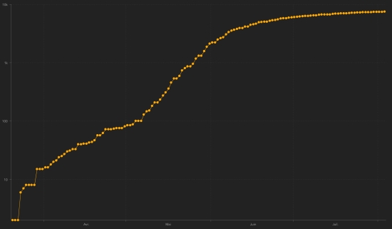 * Note : The Haitian health authorities having "failed" 16 times to update the number of cases ... these graphs represent overall a more positive situation than reality .. Imported cases : 152 cases since the reopening of airports and +43 since the last report dated July 9 (109) https://www.haitilibre.com/en/news-31348-haiti-flash-152-cases-imported-since-the-reopening-of-airports.html (update not available) Suspected cases investigated since March 19 : 18,949 cases (+281 in 24 hours), previous (+128) Cases tested since the start of the pandemic : 18,008 (+47 in 24 hours as of August 1) People currently hospitalized : (information not available) People in intensive care currently : (information not available) People in home quarantine currently : (information not available) Cases confirmed by department : West: 5,318 cases (+22), the day before: (+3) Artibonitis: 436 cases (+3), the day before: (+3) Center: 370 cases (unchanged), the day before: (+1) North: 348 cases (+3) Southeast: 214 cases (+1) South: 206 cases (unchanged) Northeast: 178 cases (+3), the day before: (+1) Northwest: 168 cases (+1) Grand'Anse: 150 cases (Unchanged) Nippes: 123 cases (+2) Location of cases : West : 5,318 cases (+22) Delmas : 1,299 cases (+9) Port-au-Prince : 1,093 cases (+6) Pétion-ville : 785 cases (+1) Tabarre : 651 case (+1) Croix-des-Bouquets : 505 cases (+2) Carrefour : 404 cases (+1) Petit-Goâve : 140 cases (unchanged) Cité Soleil : 90 cases (unchanged) Cabaret : 72 cases (unchanged) Léogâne : 65 cases (+1) Kenskoff : 57 cases (unchanged) Gressier 38 cases (+1) Archaie : 37 cases (+1), the day before : (+1) Anse à Galet : 34 cases (+2), the day before : (+2) Grand Goâve : 12 cases (unchanged) Ganthier : 11 case (unchanged) Cornillon : 8 cases (unchanged) Thomazeau : 8 cases (unchanged) Fonds-Verettes : 6 (unchanged) Pointe à Raquette : 3 cases (unchanged) Artibonite : 436 cases (+3) Saint Marc : 150 cases (+1) Verettes : 103 cases (unchanged) Gonaïves : 100 cases (+2) Gros Morne : 18 cases (unchanged) Petite Rivière de l’Artibonite : 14 cases (unchanged) Marchand Dessalines : 14 cases (unchanged) L’Estère : 9 cases (unchanged) Saint Michel : 7 cases (unchanged) Desdunes : 6 cases (unchanged) Marmelade : 5 cases (unchanged) Ennery : 3 cases (unchanged) Grande Saline : 3 cases (unchanged) La Chappelle : 2 cases (unchanged) Anse Rouge : 2 cases (unchanged) Center : 370 cases (unchanged) Mirebalais : 140 cases (unchanged), the day before : (+1) Hinche : 126 cases (unchanged) Boucan Carré : 29 cases (unchanged) Lascaobas : 25 cases (unchanged) Belladère : 17 cases (unchanged) Thomonde : 12 cases (unchanged) Savanette : 6 cases (unchanged) Saut-d’Eau 5 cases (unchanged) Cerca la Source : 4 cases (unchanged) Maissade : 3 cases (unchanged) Cerca Cavajal : 2 cases (unchanged) Thomassique : 1 case (unchanged) North : 348 cases (+3) Cap Haïtien : 212 cases (+1) Limbé : 26 cases (+1) Pignon : 15 cases (+1) Grande Rivière du Nord : 14 cases (unchanged) Milot : 13 cases (unchanged) Plaine du Nord : 11 case (unchanged) Borgne : 11 case (unchanged) Limonade : 10 cases (unchanged) Plaisance du Nord : 9 cases (unchanged) Quartier Morin : 8 cases (unchanged) Pilate : 7 cases (unchanged) Acul du Nord : 5 cases (unchanged) Dondon : 3 cases (unchanged) Port Margot : 2 cases (unchanged) Bahon : 1 case (unchanged) Saint Raphaël : 1 case (unchanged) South-East : 214 cases (+1) Jacmel : 162 cases (+1) Côte-de-Fer : 14 cases (unchanged) Bainet : 13 cases (unchanged) Vallée de Jacmel : 7 cases (unchanged) Thiotte : 7 cases (unchanged) Marigot : 4 cases (unchanged) Belle Anse : 3 cases (unchanged), Anse-à-Pitre : 2 cases (unchanged) Cayes Jacmel : 2 cases (unchanged) South : 206 cases (unchanged) Cayes : 117 cases (unchanged) Aquin : 21 case (unchanged) Saint-Louis du Sud : 11 case (unchanged) Les Anglais : 10 cases (unchanged) Port-Salut : 8 cases (unchanged) Torbeck : 7 cases (unchanged) Chardonnières : 6 cases (unchanged) Camp-Perrin : 6 cases (unchanged) Port à Piment : 5 cases (unchanged) Tiburon : 4 cases (unchanged) Coteaux : 3 cases (unchanged) Chantal : 2 cases (unchanged) Île-à Vache : 2 cases (unchanged) St Jean du Sud : 2 cases (unchanged) Cavaillon 1 case (unchanged) Roche à Bateau : 1 case (unchanged) North-East : 178 cases (+3) Ouanaminthe : 56 cases (+2) Caracol 35 cases (unchanged) Trou du Nord : 28 cases (unchanged) Fort Liberté : 24 cases (+1) Mombin Crochu 13 cases (unchanged), the day before : (+1) Terrier Rouge : 7 cases (unchanged) Mont Organisé : 5 cases (unchanged) Perches : 4 cases (unchanged) Carice : 2 cases (unchanged) Capotille : 2 cases (unchanged) Ferrier : 1 case (unchanged) Ste-Suzanne : 1 case (unchanged) North-West : 168 cases (+1) Port de Paix : 104 cases (+1) Saint-louis du Nord : 17 cases (unchanged) Bombardopolis : 13 cases (unchanged) Môle Saint-Nicolas : 12 cases (unchanged) Jean Rabel : 10 cases (unchanged) Chansolme : 4 cases (unchanged) La Tortue : 4 cases (unchanged) Baie de Henne 2 cases (unchanged) Anse-à-Foleur : 1 case (unchanged) Bassin Bleu : 1 case (unchanged) Grand'Anse : 150 cases (unchanged) Jérémie : 118 cases (unchanged) Anse d’Hainault : 15 (unchanged) Chambellan : 7 cases (unchanged) Dame Marie : 3 cases (unchanged) Pestel : 2 cases (unchanged) Irois : 2 cases (unchanged) Bonbon : 1 case (unchanged) Moron : 1 case (unchanged) Roseaux : 1 case (unchanged) Nippes : 123 cases (+2) Miragoâne : 58 cases (+2) Fond des Nègres : 18 cases (unchanged) Baradères : 12 cases (unchanged) Anse à Veau 7 cases (unchanged) Petite Riviere de Nippes : 6 cases (unchanged) Plaisance du Sud : 6 cases (unchanged) Petit Trou de Nippes : 5 cases (unchanged) L’Asile : 5 cases (unchanged) Paillant : 4 cases (unchanged) Arnaud : 1 case (unchanged) Grand Boucan : 1 case (unchanged) NOTE : “unchanged” means that there are no new data available: it may be no new cases, unreported or incomplete cases or delay in transmission data at the Ministry ... Bre