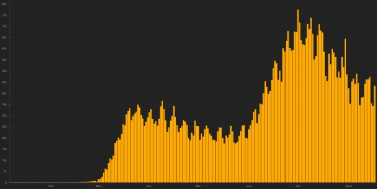 The rebound of the Covid following deconfinement remains very active France : Confirmed cases since first case : 319,766 (+4,982 in 24h), previous (+3,083) Healings : 86,682 people (+243 in 24 hours), previous (+159) National Healing Rate : 27.11% (-) Deaths : 30,638 deaths (+19 in 24h), previous (+29) Active cases : (excluding death and recovery) 202,446 (+4,720 in 24 hours), previous (+2,894) Latin America and the Caribbean active cases : Brazil : 483,095 cases (-35,205 in 24 hours), the day before (+14,432) Peru : 156,462 cases (-6,459 in 24 hours), the day before (-11,232) Colombia : 134,424 (-1,548 in 24h), previous (-1,960) Argentina : 110.944 (+3.064 in 24 hours), the day before (+1.918) Mexico : 39,073 cases (+149 in 24 hours), the day before (-3,035) Dominican Republic : 24,505 cases (-418 in 24 hours), the day before (-861) Panama : 24,560 (-247 in 24h), the day before (-516) Chile : 16,034 cases (-524 in 48h), previous (+412) French Guiana : 7,558 cases (+19 in 24 hours), the day before (+27) Ecuador : 6,015 cases (+473 in 24 hours), the day before (+69) Haiti : 2,182 cases (-17 in 48 hours), previous (+4) Jamaica : 1,761 cases (+213), the day before (+102) Bahamas : 1,425 cases (+59 in 24 hours), the day before (+31) Guadeloupe : 1,156 cases (update not available), the day before (+124) Martinique : 625 cases (+129 in 24 hours), the day before (+19) is one place ahead Cuba : 575 (+15 in 24 hours), the day before (+8) HAITI : Epidemiological situation : NOTE : The Ministry of Public Health, for an unexplained reason, is no longer able to publish on time regularly as before the figures of the situation in Haiti, to be inserted in our 11:00 am general bulletin. In order not to penalize the Haitian diaspora in the world, the 11:00 am bulletin is now published earlier (without the situation in Haiti). A special bulletin will be published for Haiti during the day. Should the situation recover in the future, we will include the situation in Haiti in the general bulletin. [HL] Previous Haiti Special Bulletin : UNITED STATES : Epidemiological situation : United States : Cases since the start of the epidemic : 6,075,650 cases (+44,637 in 24 hours), the day before (+33,849) Healings : 2,202,663 people (+17,838 in 24 hours), the day before (+30,886) National Healing Rate : 36.25% (+) Death : 184,689 deaths (+1,091 in 24 hours), the day before (+530) National death rate : 3.04% (=) Active cases (less deaths and recoveries): 3,688,298 cases (+25,708 in 24 hours), the day before (+2,433) Tests : 78,996,267 people have been tested (+703,946 in 24 hours) the day before (+701,198) USA: Number of daily confirmed cases