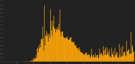 WORLD SITUATION: On Monday, September 14, 2020, the number of people worldwide infected with the Covid-19 coronavirus since the start of the pandemic (Official source), amounted to 29,008,497 (+227,024). Number of contaminated countries 188 (unchanged) Bulletin of the day before: https://www.haitilibre.com/en/news-31790-haiti-diaspora-covid-19-daily-report-september-13-2020.html Since the start of the pandemic 19,627,266 people (+155,174 in 24 hours) have been cured of Covid-19 around the world, the day before (+236,423) Since the start of the pandemic 924,127 people have died of Covid-19 worldwide (+3,537 in 24 hours), the day before (+4,356) The number of active cases in the world (excluding deaths and recoveries) is currently 8,457,104 cases (+68,313 in 24 hours), the day before (+22,131) World: Number of daily confirmed cases