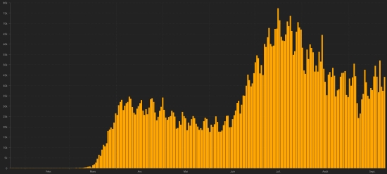 The Ministry of Health announced that the rate of contagion in the Dominican Republic had fallen by 14%. The curfew will be eased effective September 28 from 9:00 a.m. (instead of 7:00 p.m.) to 5:00 a.m. (Monday to Friday) and from 7:00 p.m. (instead of 5:00 p.m.) to 5 a.m. (Saturday and Sunday). The relaunch of tourism activities across the country is officially announced for October 1, 2020. National Healing Rate: 76.30% (+) Death rate: 1.89% (=) FRANCE: Epidemiological situation: Confirmed cases since the first case: 530,996 (+16,096 in 24h), previous (+13,072) Hospitalized people: 6,012 (+99 in 24 hours), the day before (+136) Intensive care: 1,045 people (+46 in 24 hours), the day before (+51) Healings: 94,383 people (+431 in 24 hours), the day before (+444) Deaths: 31,431 deaths (+52 in 24h), the day before (+43) Active cases: (excluding death and recovery) 405,182 (+15,613 in 24 hours), The day before (+9,411) France: Number of daily confirmed cases