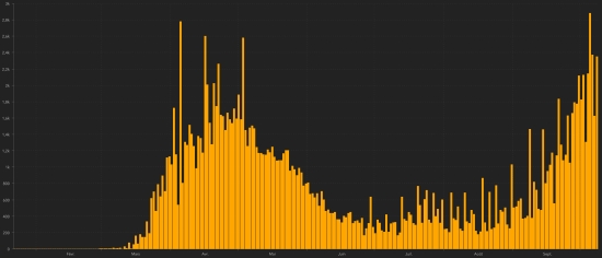 WORLD SITUATION: Friday, October 9, 2020, the number of people infected worldwide by the Covid-19 coronavirus since the start of the pandemic (Official source), amounts to 36,561,936 (+361,123 in 24 hours), the watch (+342,212). Number of contaminated countries 188 (unchanged) Bulletin of the day before: https://www.haitilibre.com/en/news-31990-haiti-diaspora-covid-19-daily-bulletin-october-8-2020.html Since the start of the pandemic 25,482,428 people (+221,391 in 24 hours) have been cured of Covid-19 around the world, the day before (+256,468) Since the start of the pandemic 1,062,624 people have died from Covid-19 around the world (+6,131 in 24 hours), the day before (+5,722) The number of active cases in the world (excluding deaths and recoveries) is currently 10,016,884 cases (+133,601 in 24 hours), the day before (+80,022) World: Number of daily confirmed cases