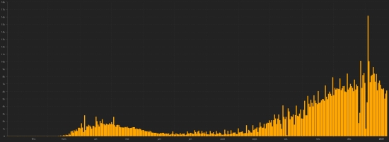 Vaccination: 56.58 million doses of vaccine injected on January 21, 2021 (+9.69 million in 48 hours) latest data available TOP 5 countries with the most active cases: (less deaths and recoveries) 1st - USA: 9,120,550 cases, (+56,693 in 24 hours), the day before (-1,996) 2nd - France: 2,744,923 (+21,206 in 24 hours), the day before (+25,048) 3rd - Spain: 2,251,288 cases (+43,983 in 24 hours), the day before (+41,112) 4th * - United Kingdom 1,862,359 cases (+21,414), the day before (+24,069) 5th - Brazil: 810,129 cases (+2,791 in 24 hours), the day before (+63,045) TOP 5 countries with the most deaths: 1st - USA: 410,349 deaths (+4.202 in 24 hours), the day before (+4.748) 2nd - Brazil: 214,147 deaths (+1,316 in 24 hours), the day before (+1,340) 3rd - India: 153,032 deaths (+163 in 24 hours), the day before (+151) 4th - Mexico: 146,174 deaths (+1,803 in 24 hours), the day before (+1,899) 5th * - United Kingdom: 94,580 deaths (+1,290 in 24 hours), the day before (+1,820) TOP 5 countries with the highest number of healings: 1st - USA: 15,100,991 cures (+132,275 in 24 hours), cure rate 61.31% (+) 2nd - India: 10,283,708 healings (+18,002 in 24h), cure rate 96.78% (+) 3rd - Brazil: 7,673,092 healings (+55,012 in 48h), cure rate 88.22% (-) 4th - Russia: 3,048,837 healings (+26,976 in 24h), cure rate 83.81% (+) 5th - Turkey: 2,290,032 healings (+6,113), cure rate 94.92% (=) DIASPORA: USA: Case since the first case (March 9, 2020): 24,631,890 cases (+193,170 in 24 hours), the day before (+184,582) Healings: 15,100,991 healings (+132,275 in 24 hours), the day before (+181,830) National Healing Rate: 61.31% (+) Deaths: 410,349 deaths (+4.202 in 24 hours), the day before (+4.748) Active cases (less deaths and recoveries): 9,120,550 cases, (+56,693 in 24 hours), the day before (-1,996) Canada: Cases since the start of the epidemic (January 25, 2020): 736,441 cases (+6,111 in 24 hours), the day before (+5,701) Healings: 652,246 people (+7,279 in 24 hours), the day before (+7,835) National Healing Rate: 88.57 (+) Deaths: 18,510 deaths (+94 in 24 hours), the day before (+127) National death rate: 2.51% (-) Active cases: (excluding death and cure) 65,685 cases (-1,262 in 24 hours), the day before (-2,261) Vaccination: 738,864 doses of vaccine injected since December 14, date of the first injection in Canada, (+87,725 in 48 hours as of January 21, 2021) latest data available. Canada: Number of daily confirmed cases