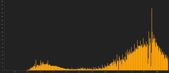 Vaccination: 151.49 million doses of vaccine injected (+4.29 million doses injected in 24 hours (updated February 10, 2021, latest data available). TOP 5 countries with the most active cases: (less deaths and recoveries) 1st - USA: 8,988,286 cases, (-97,116 in 24 hours), the day before (-34,277) 2nd - France: 3,137,920 (+ 23,895 in 24 hours), the day before (+16,422) 3rd - Spain: 2,809,521 cases (+17,471 in 24 hours), the day before (15,636 in 48 hours) 4th * - United Kingdom 1,851,466 cases (-23,182 in 24 hours), the day before (-21,452) 5th - Brazil: 808,035 cases (+19,197 in 24 hours), the day before (-25,450) TOP 5 countries with the most deaths: 1st - USA: 471,567 deaths (+3,364 in 24 hours), the day before (+3,120) 2nd - Brazil: 234,850 deaths (+1,330 in 24), the day before (+1,986 in 48 hours) 3rd - Mexico: 169,760 deaths (+1,328 in 24 hours), the day before (+1,701) 4th - India: 155,360 deaths (+108 in 24 hours), the day before (+94) 5th * - United Kingdom: 114,851 deaths (+1.001 in 24 hours), the day before (+1.052) TOP 5 countries with the highest number of healings: 1st - USA: 17,827,323 healings (+188,106 in 24h), cure rate 65.33% (+) 2nd - India: 10,573,372 healings (+11,764 in 24h), cure rate 97.26% (+) 3rd - Brazil: 8,616,282 healings (+39,075 in 24h), cure rate 89.20% (-) 4th - Russia: 3,499,230 healings (+21,470 in 24h), cure rate 87.85% (+) 5th - Turkey: 2,445,285 healings (+7,903 in 24h), cure rate 95.64% (-) DIASPORA: USA: Case since the first case (March 9, 2020): 27,287,176 cases (+94,354 in 24 hours), the day before (+95,476) Healings: 17,827,323 healings (+188,106 in 24 hours), the day before (+126,633) National Healing Rate: 65.33% (+) Death: 471,567 deaths (+3,364 in 24 hours), the day before (+3,120) Active cases (less deaths and cures): 8,988,286 cases, (-97,116 in 24 hours), the day before (-34,277) Canada: Cases since the start of the epidemic (January 25, 2020): 818,755 cases (+3,268 in 24 hours), the day before (+2,683) Healings: 760,476 people (+3,888 in 24 hours), the day before (+4,194) National Healing Rate: 92.88% (+) Death: 21,007 deaths (+93 in 24 hours), the day before (+84) National death rate: 2.57% (+) Active cases: (excluding death and cure) 37,272 cases (-713 in 24 hours), the day before (-1,595) Vaccination: 1.15 million doses of vaccine injected since December 14, 2020, the date of the first injection in Canada (+30,000 doses in 24 hours as of February 8, 2021 latest data available). Canada: Number of daily confirmed cases