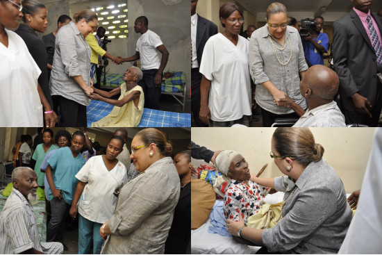 The First Lady of the Republic of Haiti, Mrs. Sophia Martelly, accompanied by the Mayor of the town of Port-au-Prince, Jean Yves Jason Muscadin, visited the communal Asylum of Port-au-Prince to the Rue St-Martin this Tuesday, July 5, 2011, to better know the situation of seniors living in the center. This visit allowed the First Lady to identify the various problems faced by these people in the aftermath of January 12, 2010. The space is largely damaged and some affected, are also accommodated in this place. A situation of congestion that makes difficult the management of the center. Thirty-nine (39) men and seventeen (17) women aged between 60 and 115 years live there now. They thanked the First Lady who, they say, bring a wind of hope in the center. Since more than four years, official visits are increasingly rare in the communal Asylum.